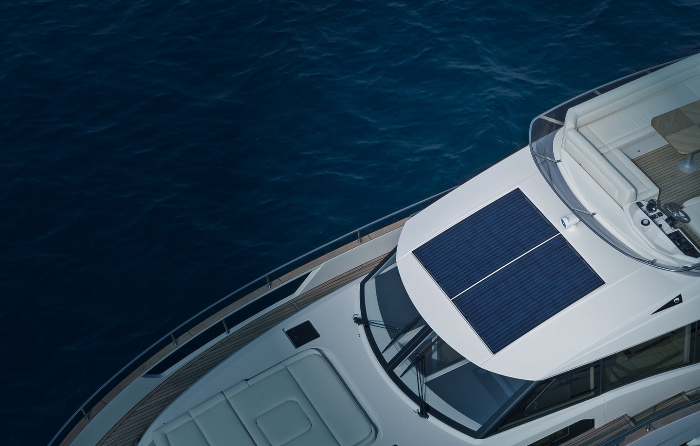 Even without the hybrid drive system, there are huge benefits from Greenline’s standard fit solar panels. The panels are constantly creating sustainable energy and feeding the domestic battery bank so onboard lighting and refrigeration, for example, can be run silently without having to rely on a diesel generator. This harnessing of solar power brings both peace of mind and a responsible way to create energy on board.