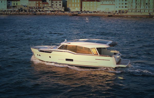 Le linee del Greenline 48 Coupé assomigliano a quelle della sua gemella 48 Fly per un look classico e allo stesso tempo moderno sull'acqua, con alcune delle caratteristiche distintive di Greenline, tra cui grandi finestre del salone, ponti laterali protetti e un'apertura del baluardo a prua.