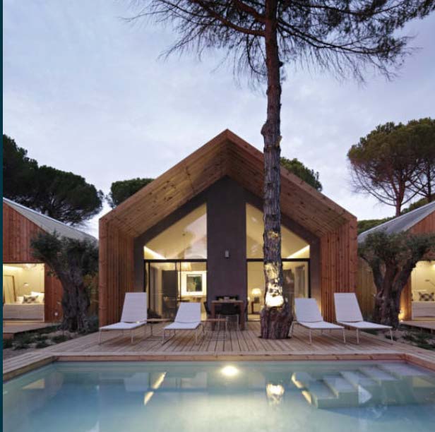 Sublime Comporta, Lizbon'dan sadece bir saat uzaklıkta ,dalgalı şemsiye çamları ve mantar ağaçları, kum tepeleri, üzüm bağları, pirinç tarlaları ve 60 km'den fazla bozulmamış beyaz kumlu plajlarla çevrili 17 hektarlık çarpıcı bir arazide yer almaktadır. Burada nefes kesici bir doğal ortam, çağdaş mimarinin ve dekorun zarafetiyle bir araya geliyor ve doğaya saygılı olunurken, tasarım ve konfor arasındaki mükemmel dengeyi sağlıyor. Bazı kabanaların içinde büyüyen ağaçlar bile var, doğal çevreyi kesmekten kaçınmak için bilinçli bir girişim.